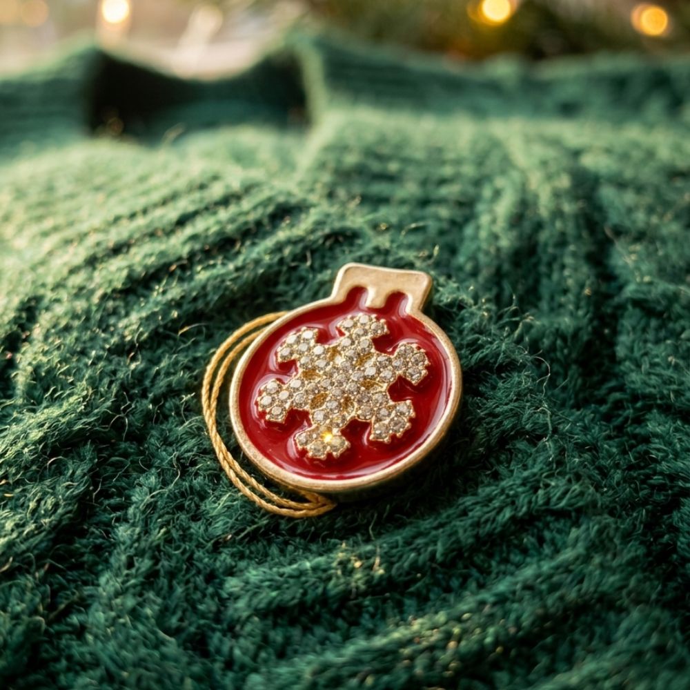 - Elegant Holiday Design: Features a charming bauble silhouette crafted on a gold base with vibrant enamel detailing and clear crystal diamantes for a sophisticated festive sparkle.