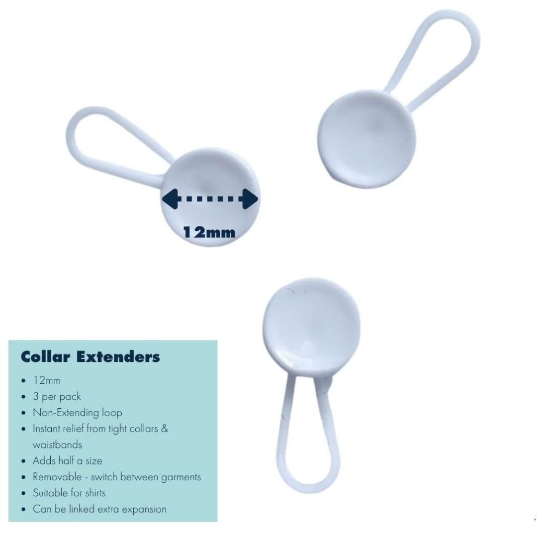 Give your shirt a little breathing room without reaching for a new one. These white 12mm plastic collar extenders from Giddy Square sit between your shirt’s top button and buttonhole, creating a fixed extra gap of up to half a size.