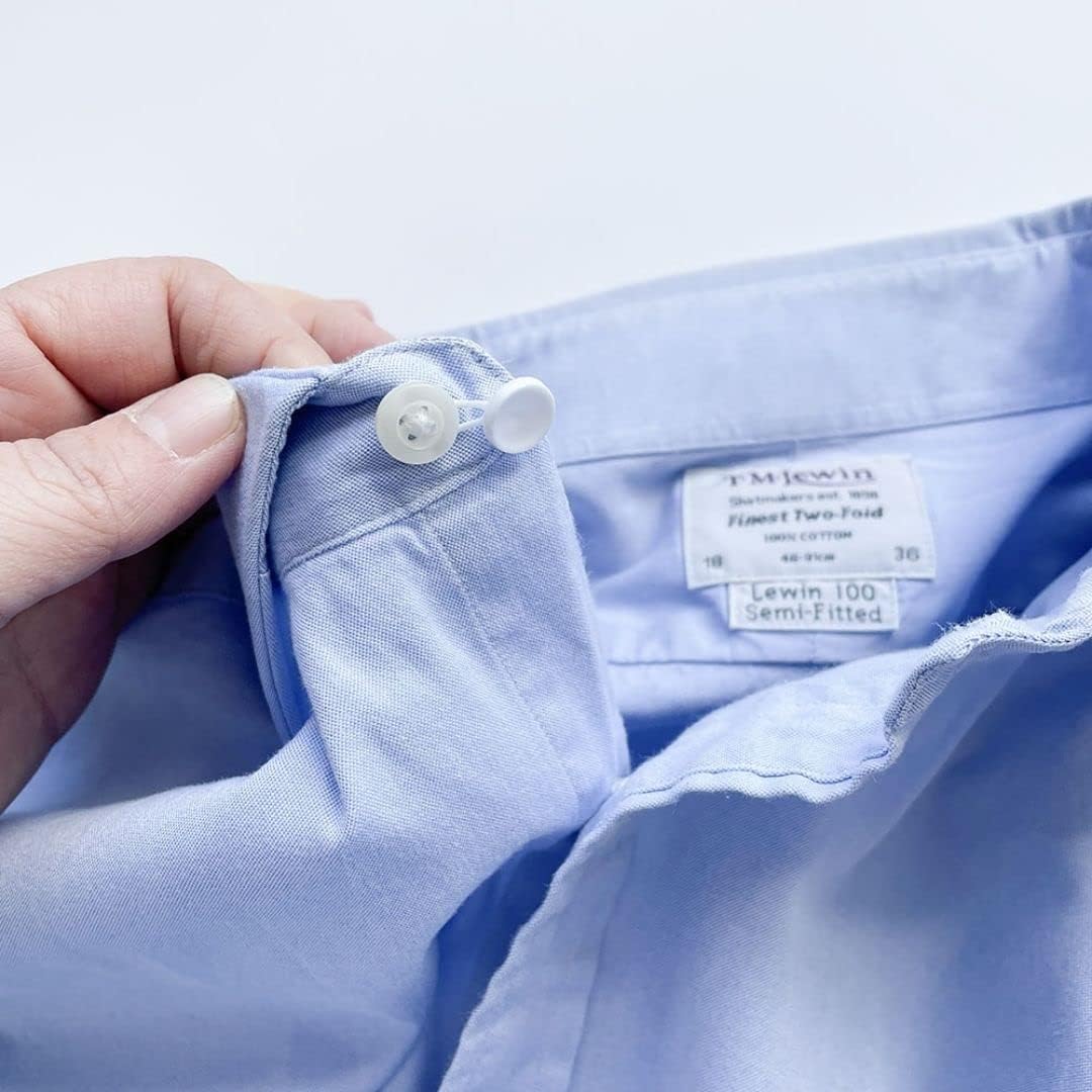- Pass the extender’s button through your shirt’s normal buttonhole