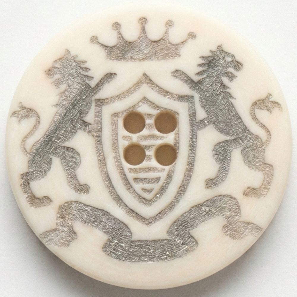 - Design: Heraldic Lions design with an ivory finish; smart for tailoring, uniforms and decorative sewing.