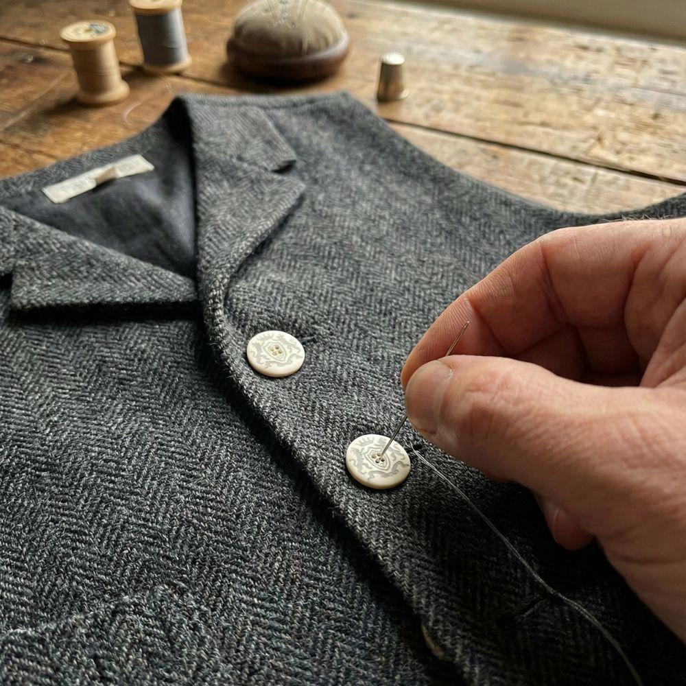 - Sewing type: 4-hole sew-through button. 4-hole sew-through button – stitch through the holes for a secure, flat finish.