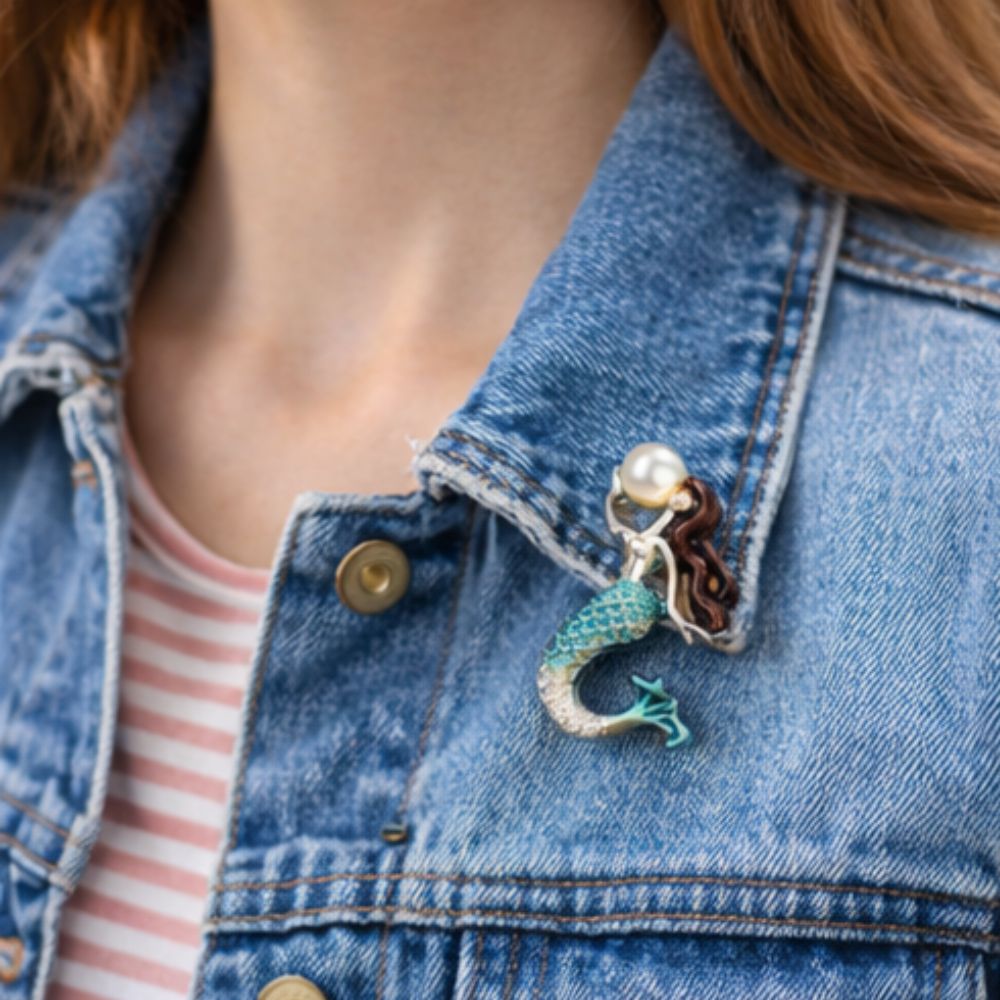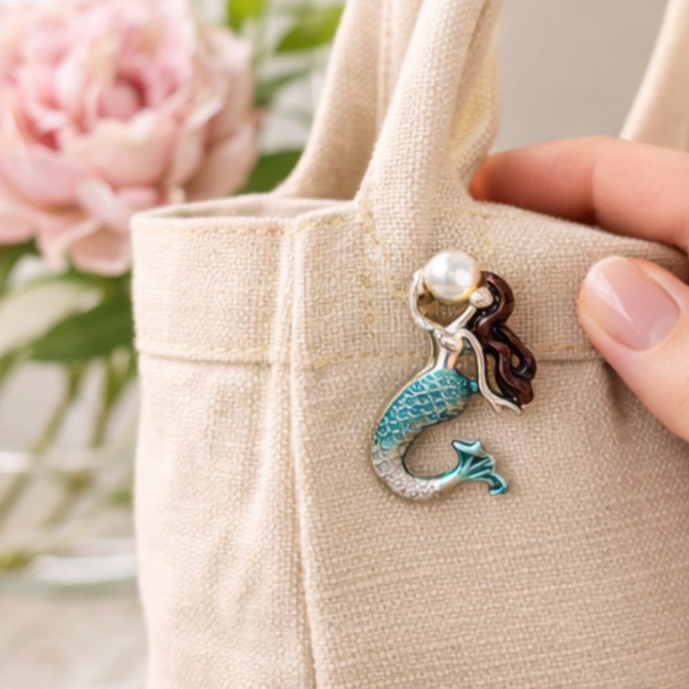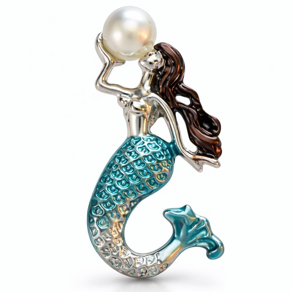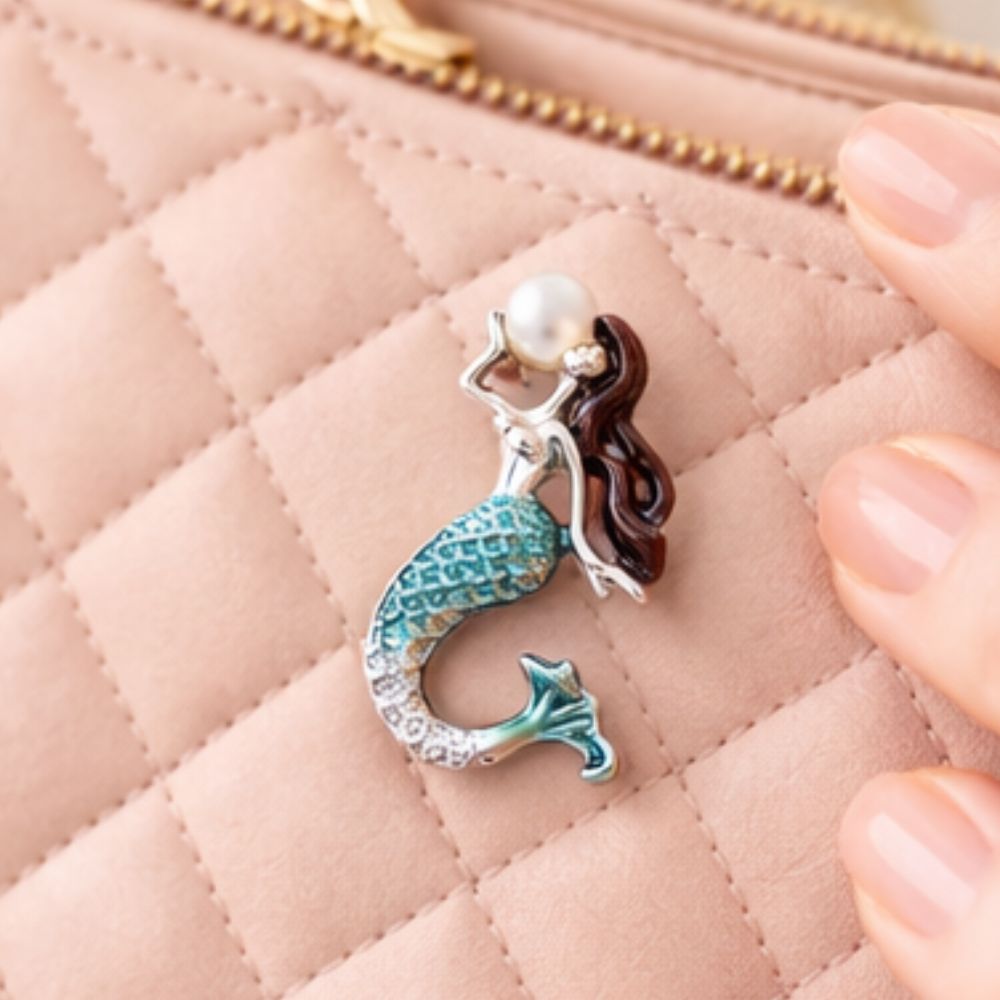 - Enchanting Mermaid Design: Features a highly detailed mermaid silhouette with a vibrant turquoise tail, flowing copper-toned hair, and a signature luminous pearl accent for a magical, ocean-inspired look.