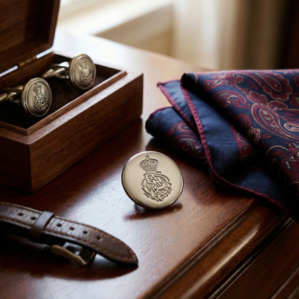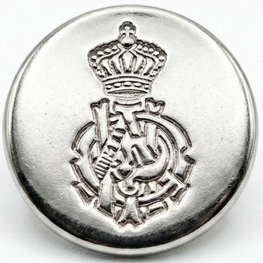 - Design: Crown And Monogram design with a silver tone finish; smart for tailoring, uniforms and decorative sewing.