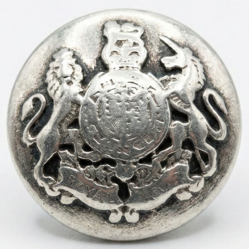 - Design: Lion And Unicorn Coat Of Arms design with a silver tone finish; smart for tailoring, uniforms and decorative sewing.
