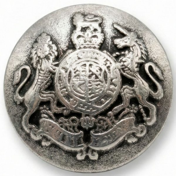 - Design: Lion And Unicorn Coat Of Arms design with a silver tone finish; smart for tailoring, uniforms and decorative sewing.
