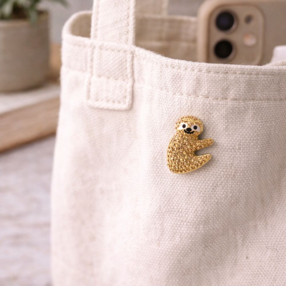 - Adorable Sloth Design: Features a charming sloth silhouette encrusted with brilliant champagne-toned diamantes and detailed enamel facial accents for a unique, "bling" aesthetic.